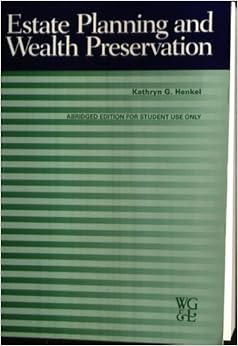 Estate Planning and Wealth Preservation; Henkel; Warren, Gorham & LaMont 2. Estate Planning and Wealth Preservation: Study Problems; Warren, Gorham & LaMont 3. Estate and Gift Taxation Codes and Regulations In addition, you may wish to resort to other materials to aid in your studies. ... Doc Retrieval